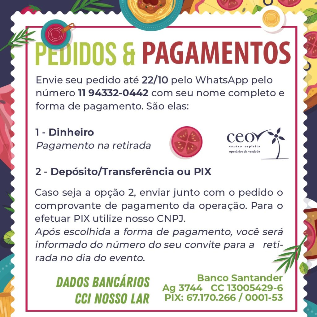 HORÁRIO RETIRADA: das 13 às 17 horas