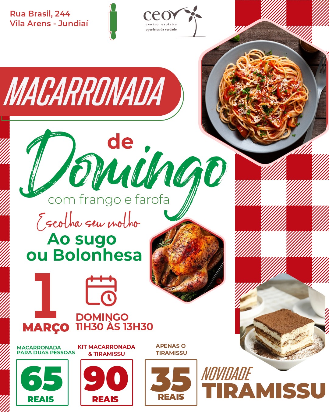Kit Macarronada + Tiramisu: R$ 90